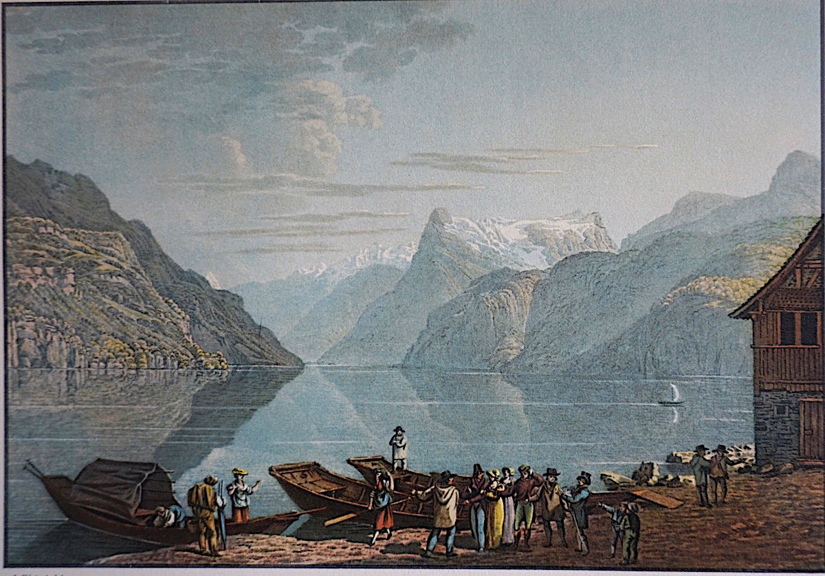 Vintage Print, Lake of Uri from Brunnen Harbour, 1890-1910, credit Antiche Curiosità©