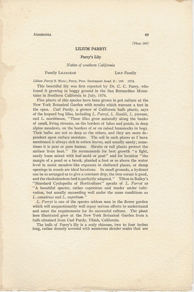 Vintage Print, Addisonia, Lilium Parryi, 1922 ca., cm. 26,5 x 17.