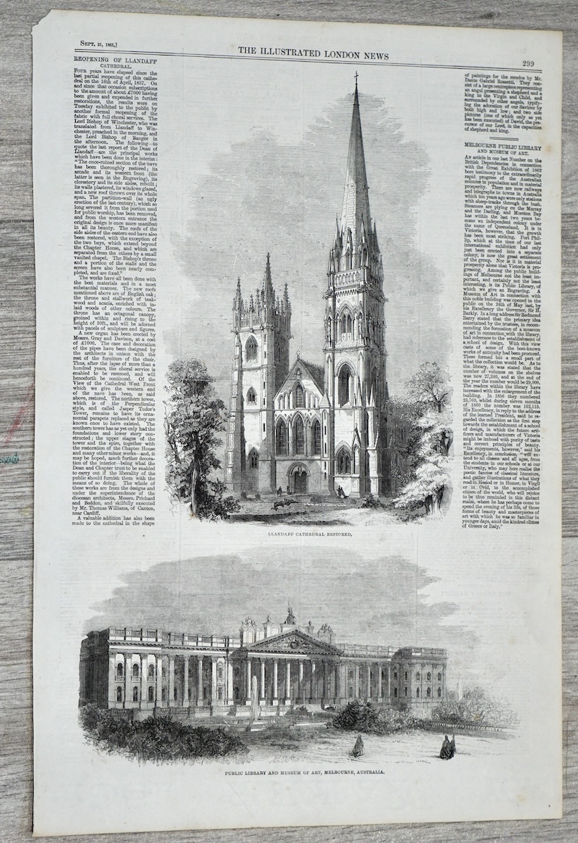 Vintage Print, Melbourne; LLandaff Cathedral, 1861, credit Antiche Curiosità©