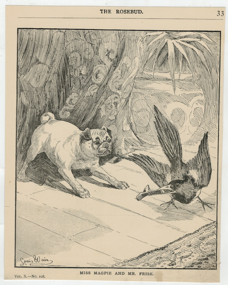 Vintage Print, Miss Magpie and Mr. Frisk, Louis Wain, 1890, 20,5 x 16,3 cm.