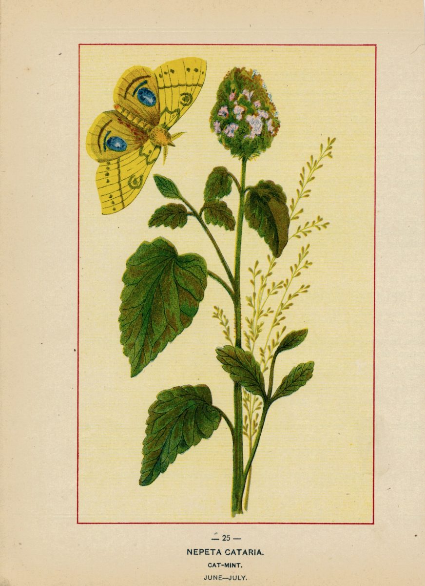 Vintage print, Nepeta Cataria, Cat-mint, 1909