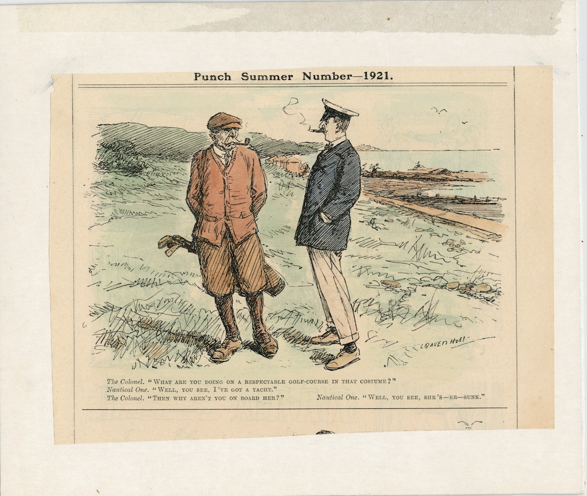 Vintage print, Punch Summer Number, 1921,  by Leonard Raven-Hill. Mounted on cardboard.