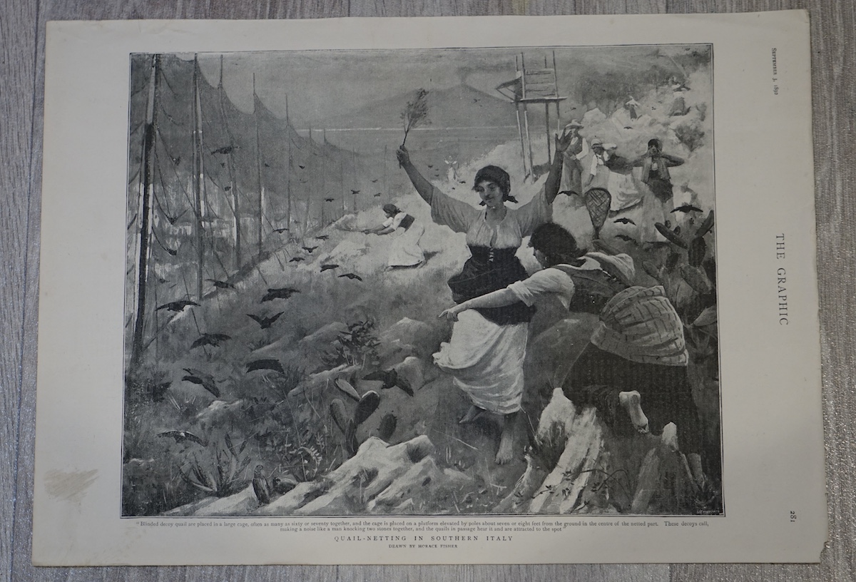 Vintage Print, Quail-netting, 1892, credit Antiche Curiosità©