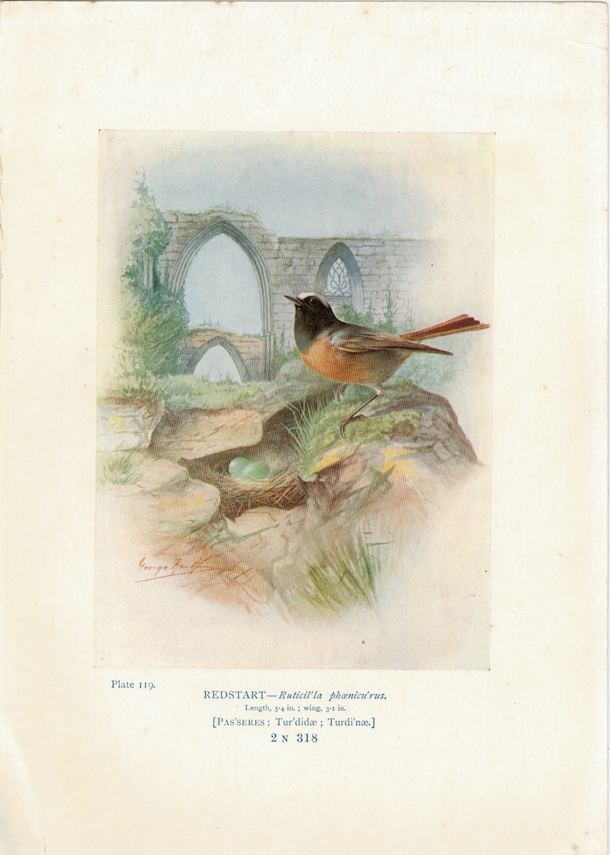 Vintage Print, Redstart, Ruticil’la phoenicu’rus, 1880 ca., cm. 24,7 x 17,5.