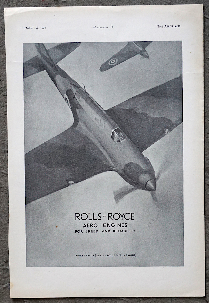 Vintage Print, Rolls-Royce, Aero-Engines, 1938, 31.3 x 21.1 cm.
