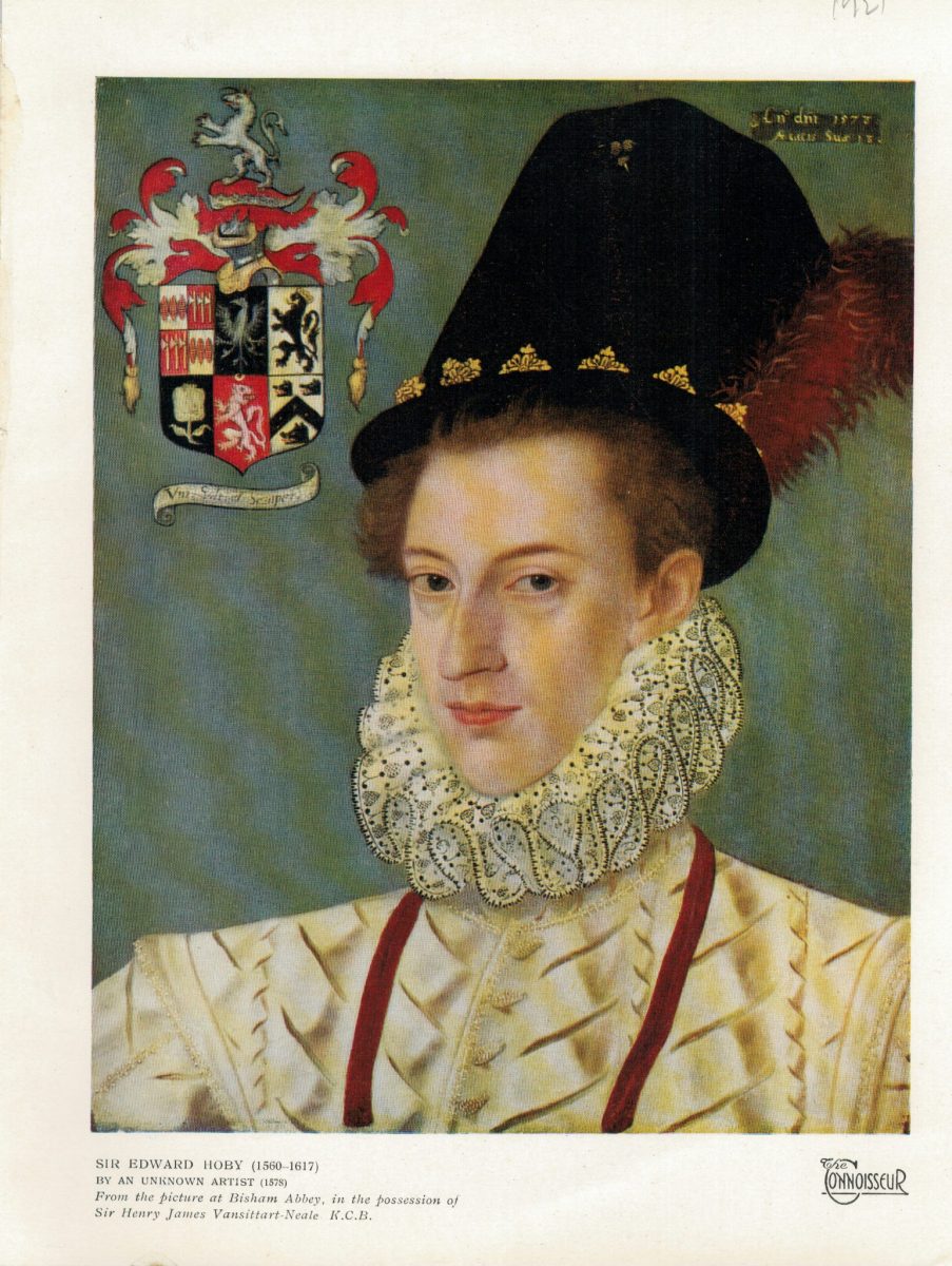Vintage Print, Sir Edward Hoby, by unknown artist, from a picture at Bisham Abbey, in the possession of Sir Henry James Vansittart-Neale, from The Connoiseur. 1921.