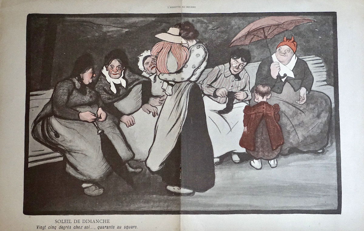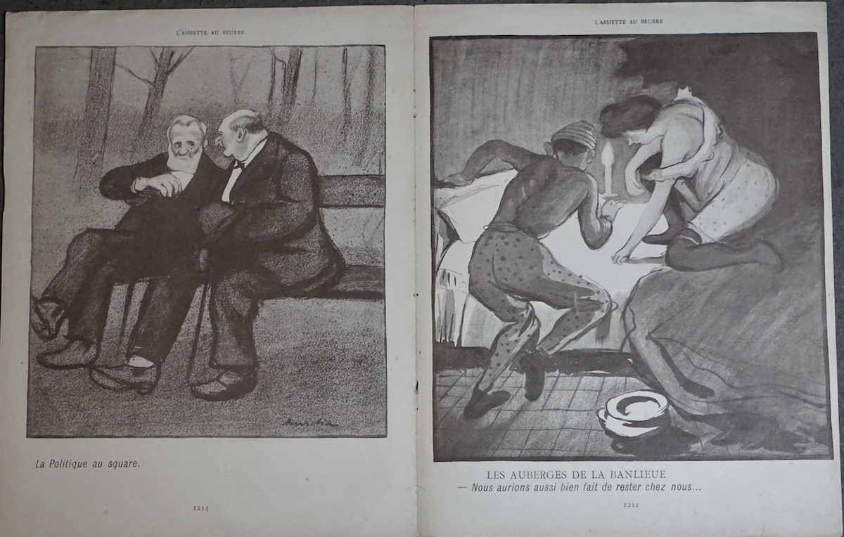 Vintage Print, Soleil de Dimanche, 1901, 48.5 x 31.8 cm. from L’Assiette au Beurre. Printed on both side.