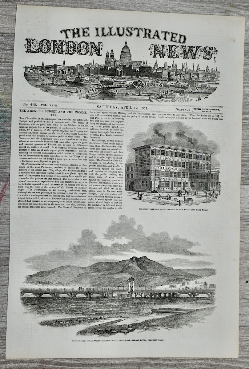 Vintage Print, The Illustrated London News, 1851, Paris; The First Cast-Iron House al New York; Bridgewater; 40.2 x 27.2 cm.