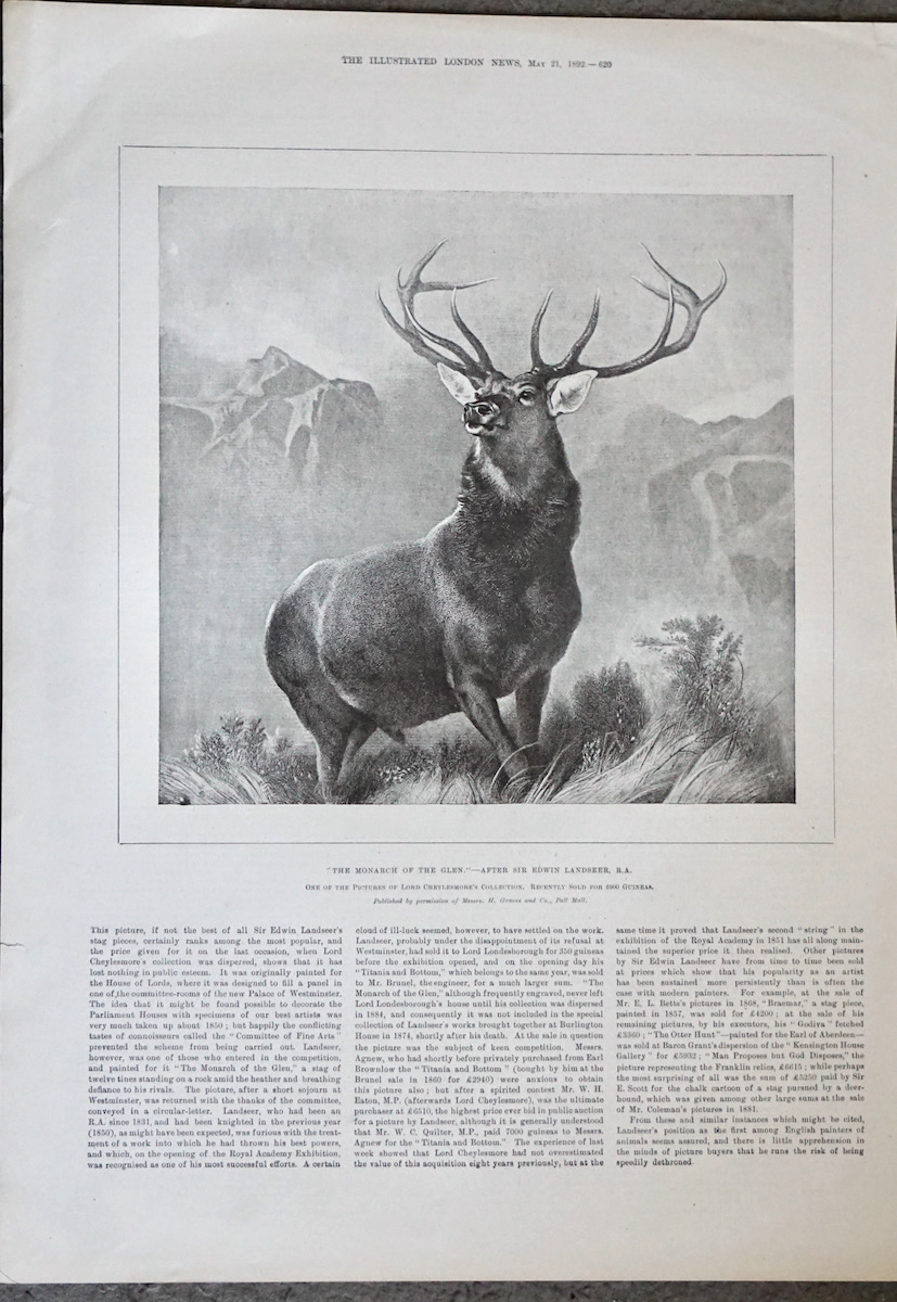 Vintage Print, The Monarch of the glen, 1892, 28 x 40 cm.