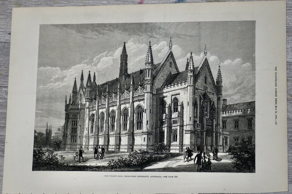 Vintage Print, The Wilson Hall, Melbourne, Australia, 1879, credit Antiche Curiosità©