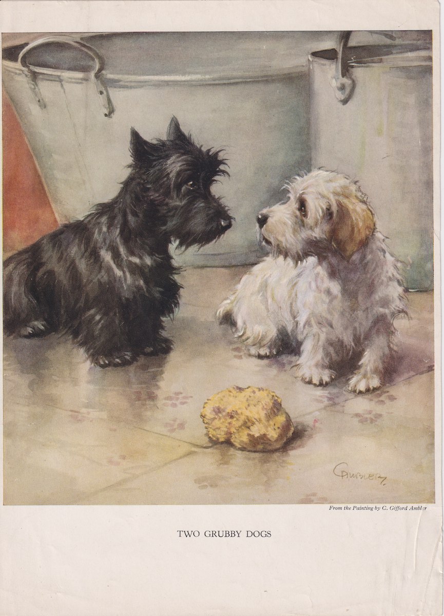Vintage Print, Two Grubby Dogs, 1909, credit Antiche Curiosità©